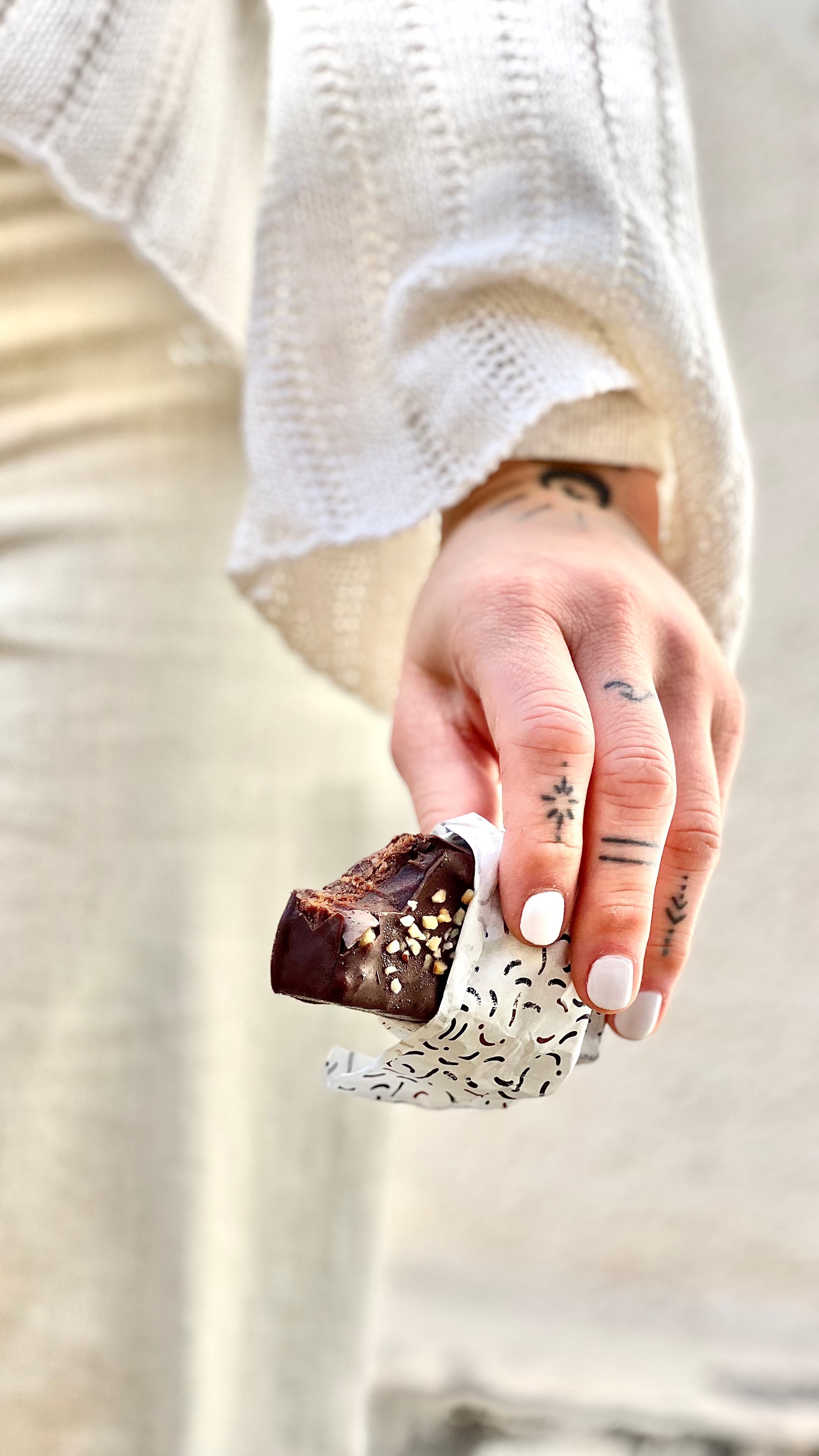 Esta barra mezcla avellanas tostadas, el chocolate amargo y dátiles en una combinación profunda, crocante y naturalmente dulce.